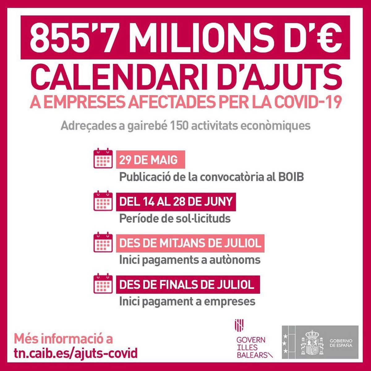 Imagen del calendario de las ayudas a empresas afectadas por la COVID-19. - CAIB