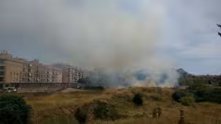 Los Bomberos de Palma están actuando en un incendio de rastrojos que se ha provocado este viernes en el antiguo canódromo de Palma, detrás de los institutos, cerca de la Riera.