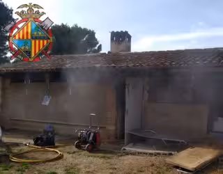 El fuego ha quemado una de las habitaciones de la casa y además se ha tenido que realizar un pequeño butrón para poder ventilar, ya que excepto la entrada, todo estaba tapiado. No se ha tenido que lamentar ningún herido.