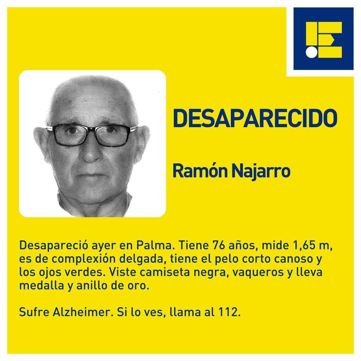 Según dicha alerta, ya desactivada, la persona que interesaba localizar era Ramón Najarro, un hombre de complexión delgada, que mide 1,65 metros de altura, tiene el pelo corto canoso y los ojos verdes.