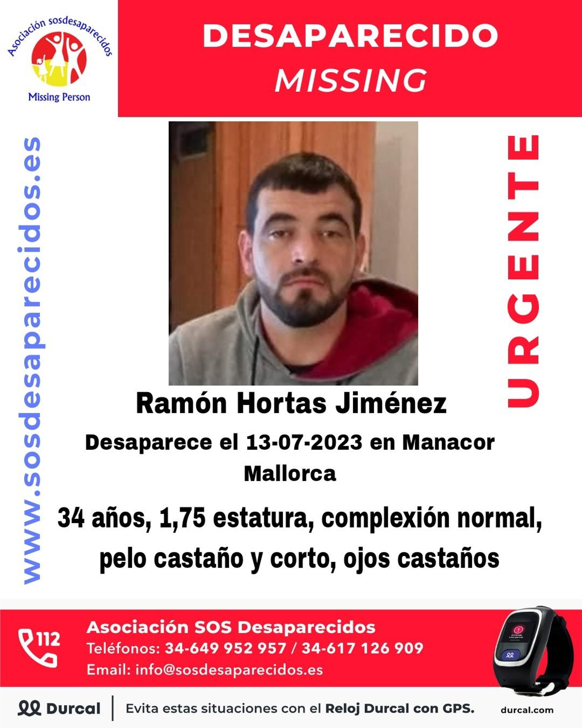 La asociación SOS Desaparecidos ha lanzado la alerta de búsqueda de un hombre de 34 años desaparecido en Manacor desde el 13 de julio.