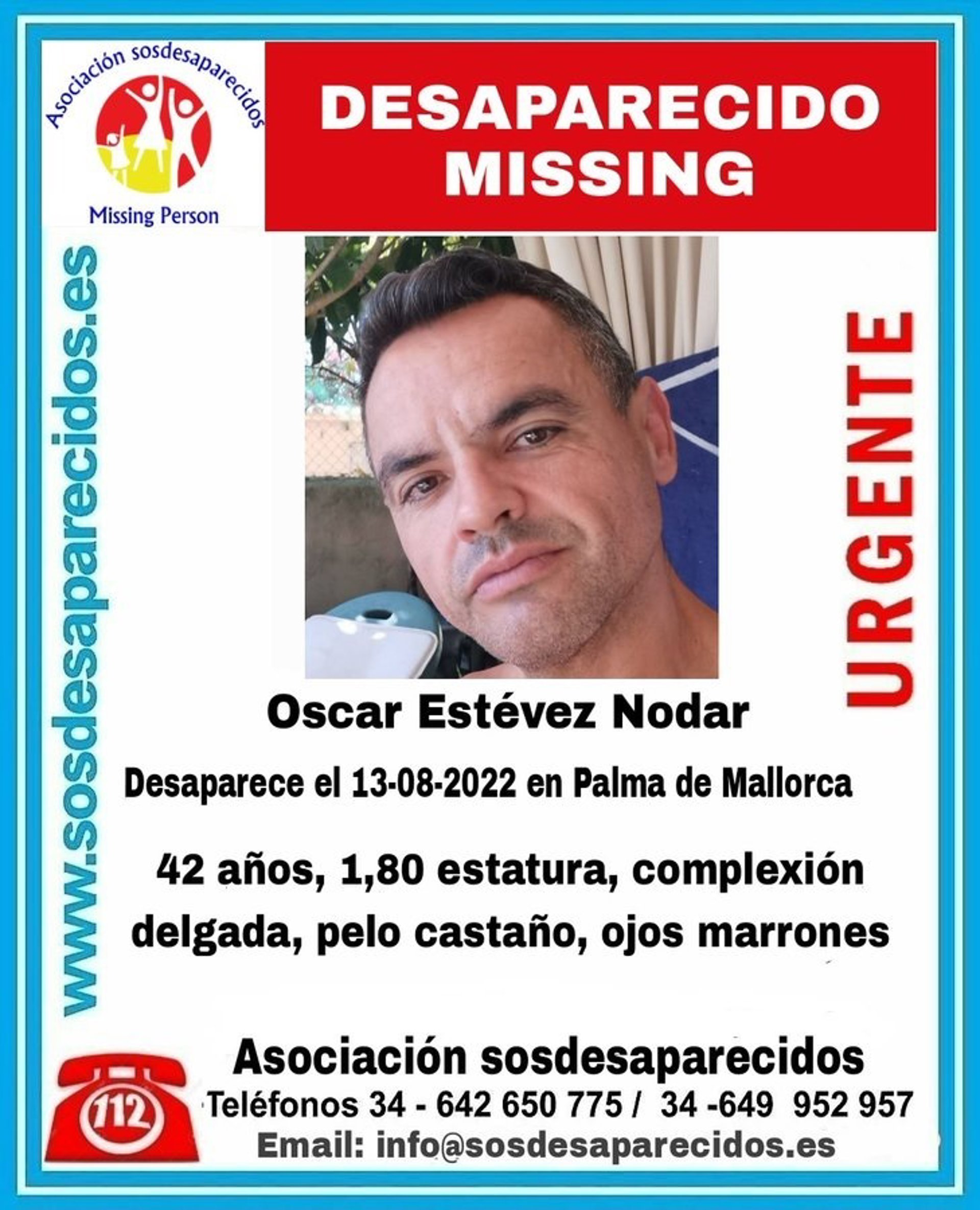 La asociación SOS Desaparecidos ha difundido este martes una alerta por la desaparición de un hombre, de 42 años de edad, visto por última vez el pasado sábado, 13 de agosto, en Palma.