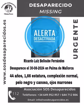 La asociación SOS Desaparecidos ha desactivado la alerta por desaparición de un hombre en paradero desconocido desde el pasado viernes, 30 de agosto, en Palma.