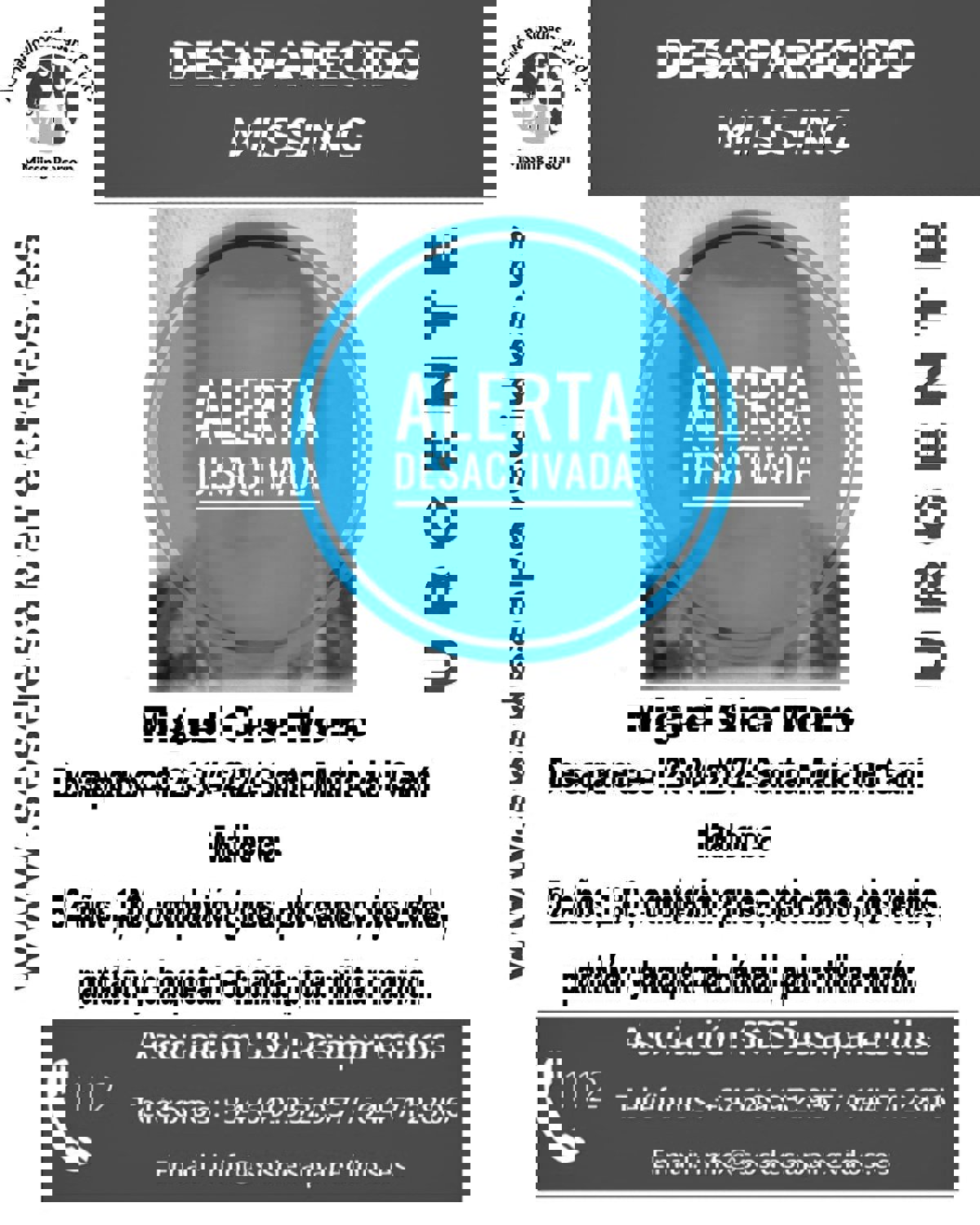 Se trata, concretamente, de Miguel Cirer Morro, según ha informado la Asociación a través de una publicación de la red social X, que ha acompañado de un cartel indicando la desactivación de la alerta y con una breve descripción del varón.