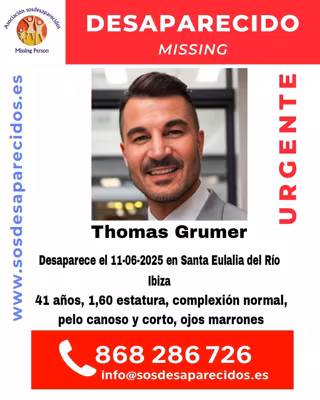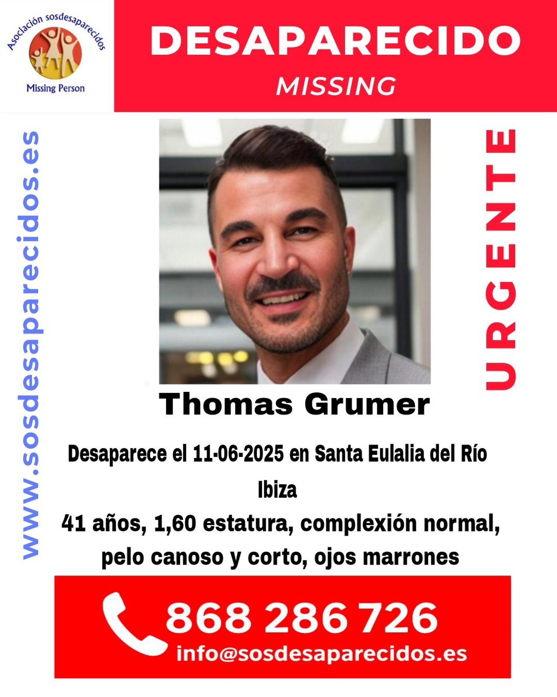 SOS Desaparecidos ha recordado este viernes que se busca a Thomas Grumer, quien fue visto por última vez el 11 de junio en Santa Eulària.