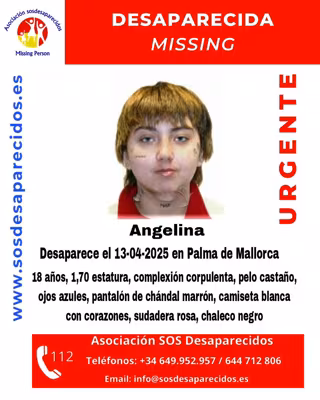 La chica responde al nombre de Angelina, mide 1,70 metros, es de complexión física corpulenta, tiene el pelo castaño y los ojos azules, según indicado la asociación en un mensaje a través de la red social X.