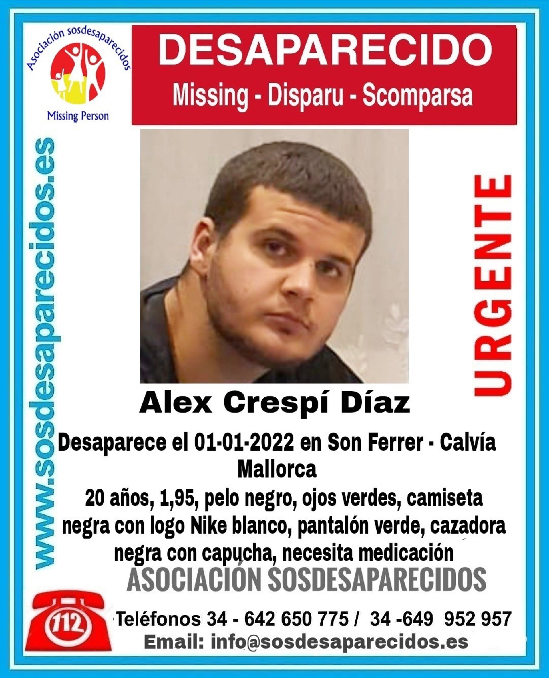 En una publicación de Twitter, recogida por Europa Press, la asociación ha detallado que se trata de Alex Crespí Díaz. También ha adjuntado una imagen y una descripción física del desaparecido para facilitar su identificación.