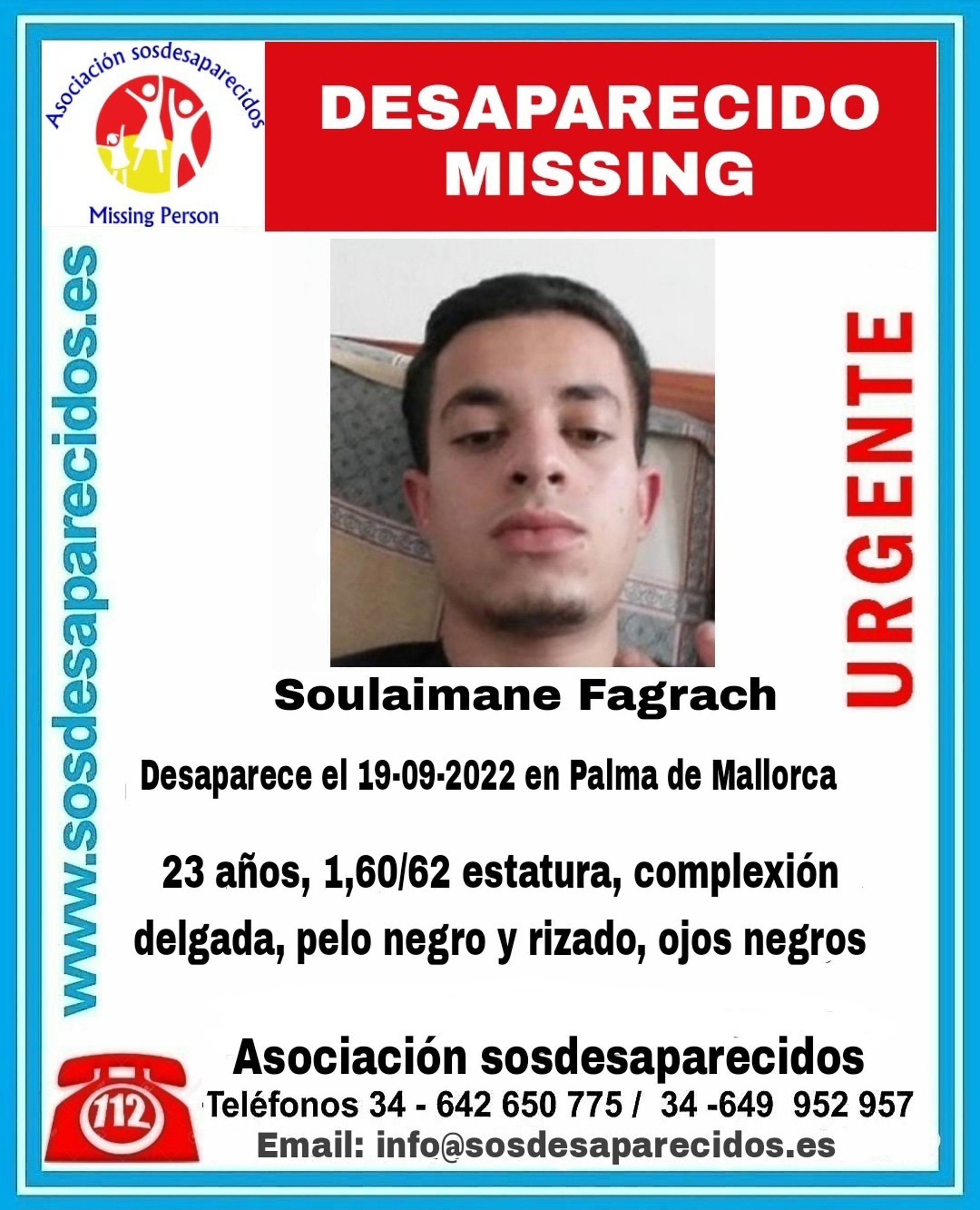 En un mensaje en Twitter, recogido por Europa Press, la asociación ha detallado que se trata de Soulaimane Fagrach. También ha adjuntado una imagen y una descripción física del desaparecido para facilitar su identificación.