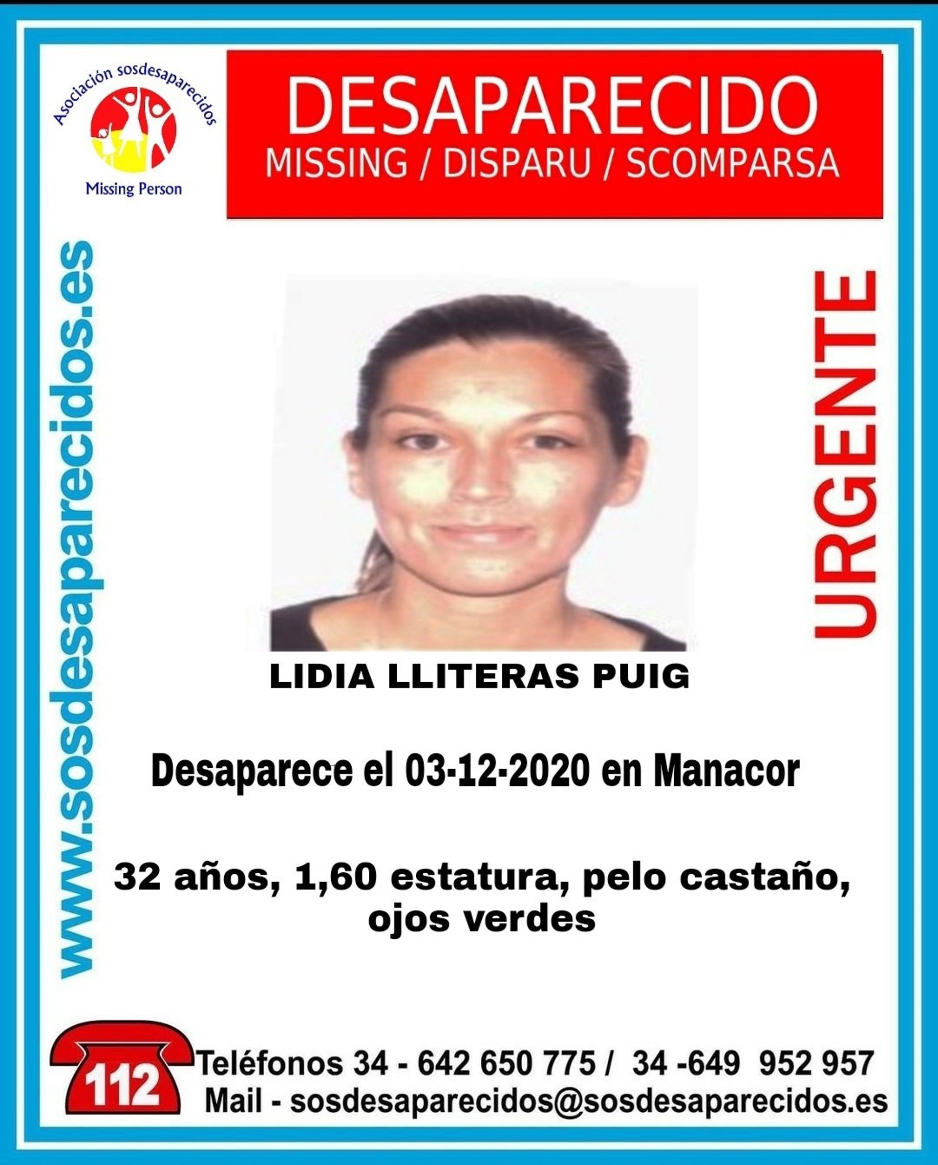 La desaparecida es Lidia Lliteras Puig. La organización ha compartido en redes un cartel con su imagen y una descripción física para facilitar su identificación.