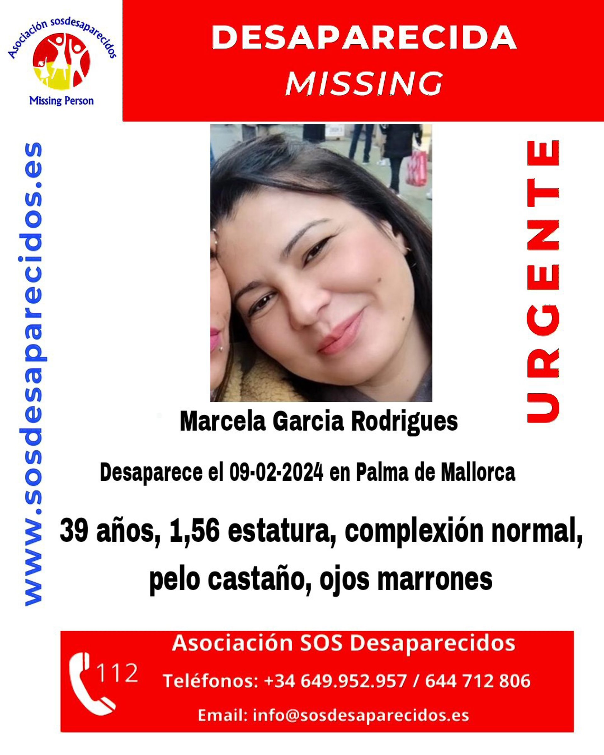 La asociación SOS Desaparecidos ha difundido la alerta por la desaparición en Palma (Mallorca) de una mujer de 39 años de edad, en paradero desconocido desde el pasado 9 de febrero.