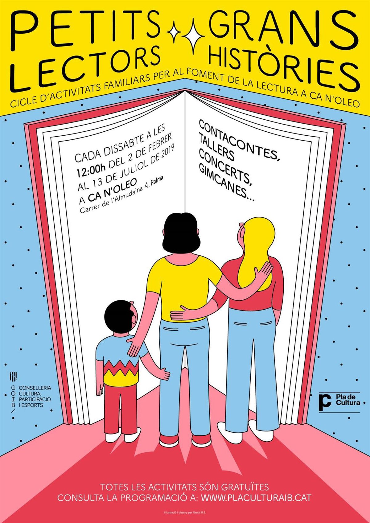 La sede de la Conselleria de Cultura, Participación y Deportes Ca n'Oleo comenzará este sábado, 2 de febrero, el ciclo de actividades familiares 'Petits lectors, grans histries' para fomentar la lectura y, asimismo, la recuperación del espacio como "sitio de dinamización cultural" y "de diálogo creativo".