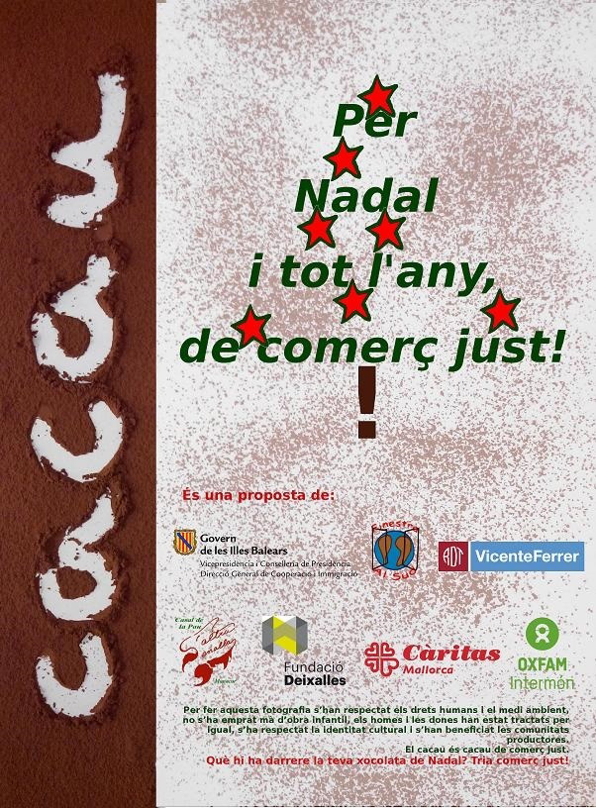 Así, la campaña, con el lema 'El cacao, por Navidad y todo el año, de comercio justo', tiene el objetivo de dar a conocer la realidad de los cultivadores de cacao y fomentar un consumo responsable.
