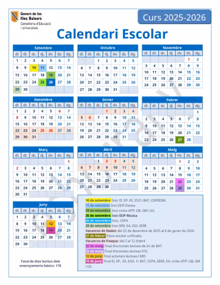 Calendario escolar Baleares 2025-2026 - CAIB