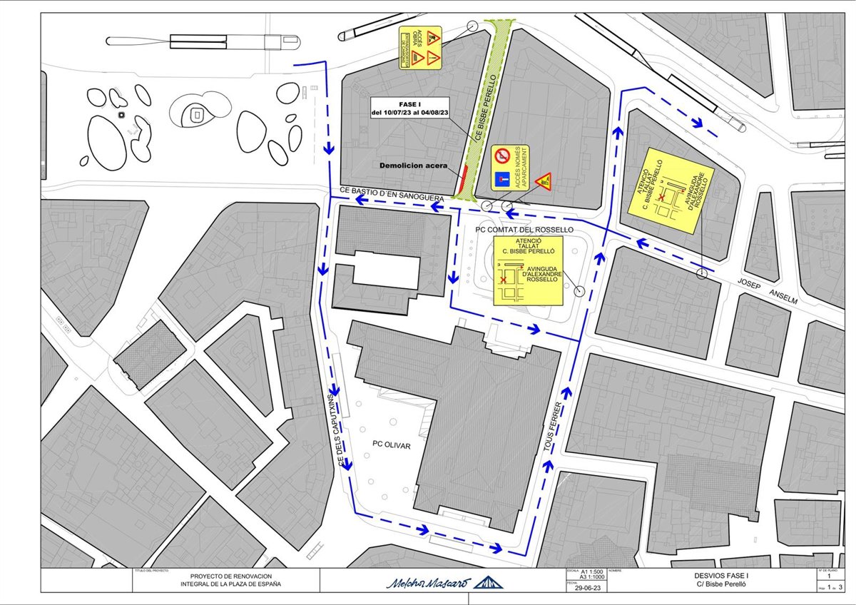 Esta actuación, ejecutada por la empresa Melchor Mascaró, tiene una previsión de plazo de finalización de un mes y forma parte del ámbito del proyecto de reforma de Plaza de España.