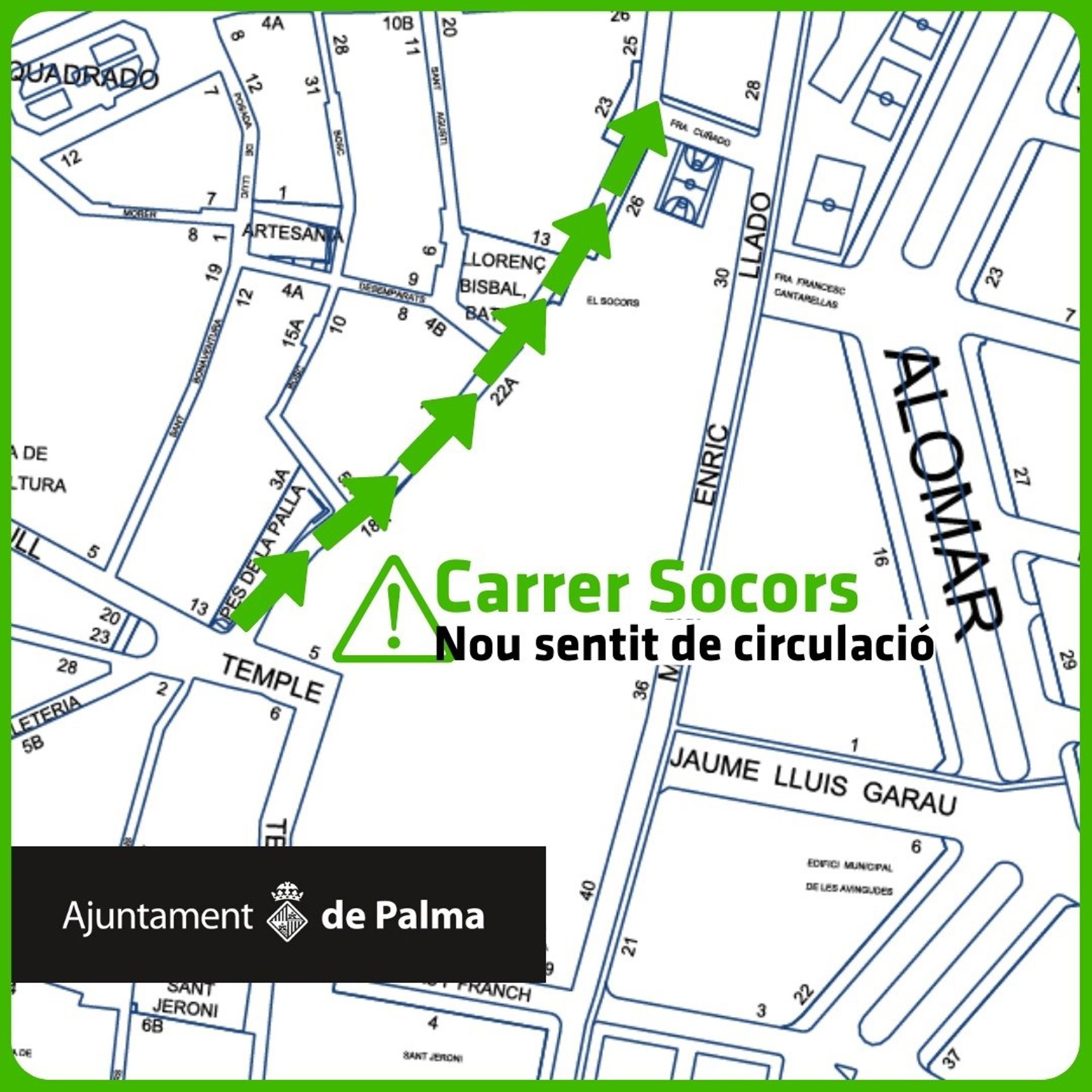 La calle Socors, en Palma, cambia el sentido de circulación. - AYUNTAMIENTO DE PALMA