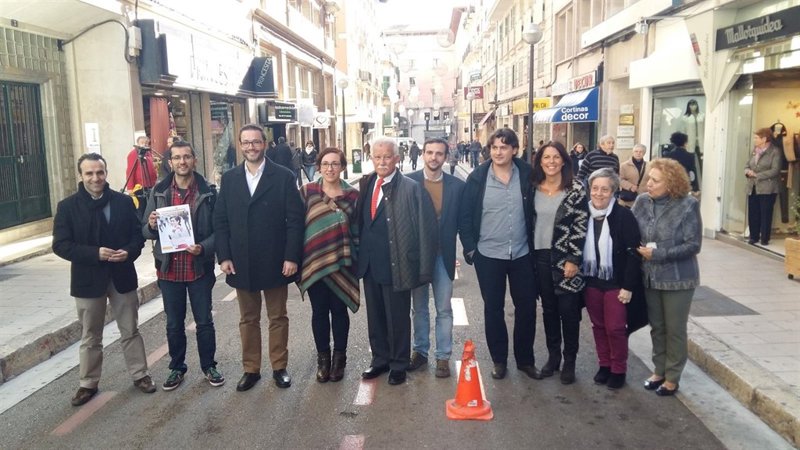 El alcalde de Palma, José Hila, ha visitado este martes la calle acompañado de los comerciantes de la zona para conocer de primera mano la reordenación que se ha llevado a cabo, según ha comunicado el Ayuntamiento de Palma.