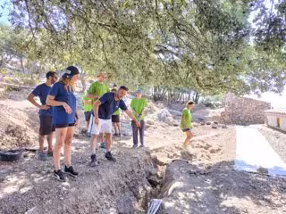 El campo de voluntariado en Alaró, integrado por 13 jóvenes, continúa la excavación de un muro perimetral en extensión, a lo largo de 75 metros cuadrados, en la zona de la hospedería donde estaban los antiguos establos, del siglo XVII, en busca del nivel anterior, que es medieval de época islámica y tardo-antigua, con hallazgos de piezas de cerámica del siglo XIII de la época almohade, de la caída de la Mallorca musulmana e incluso algunos hallazgos del origen del castillo, del siglo VI, de época bizantina.