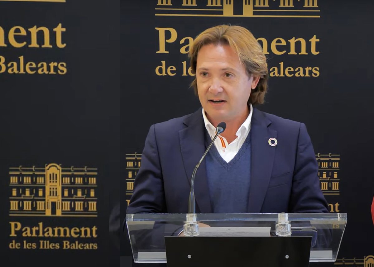 El portavoz parlamentario del grupo Vox-Actúa Baleares, Jorge Campos, en rueda de prensa. - VOX BALEARES