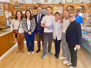 El conseller de Empresa, Alejandro Sáenz de San Pedro, y la alcaldesa de Campos, Francisca Porquer, han visitado este miércoles los nuevos establecimientos para entregar la placa que los hace visibles como Emblemtics Balears.