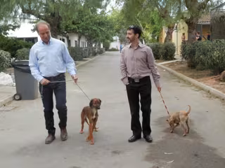 Durante la visita, Toni Fuster y el número seis de la candidatura, Carlos Cabrera, han aprovechado para sacar a pasear perros.