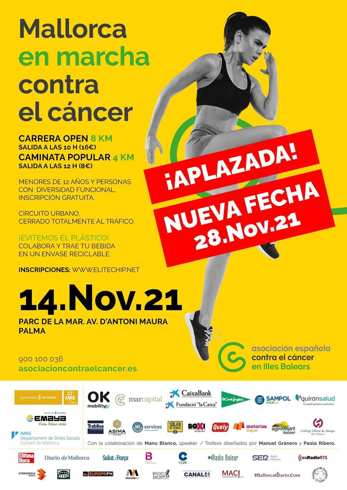 La complicada situación meteorológica, con el centro de la borrasca Blas sobre Baleares y la previsión de lluvia persistente, ha provocado que la carrera solidaria 'Mallorca En Marcha Contra el Cáncer' se aplace al día 28 de noviembre.
