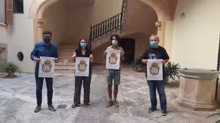 El teniente de alcalde del área de Cultura y Bienestar Social del Ayuntamiento de Palma, Antoni Noguera, la delegada de la Fundación Vicente Ferrer en Baleares, Isabel Piz, el comisario de Arte, Antoni Torrent, y el artista Albert Pinya, han presentado la jornada este jueves en Can Oms.