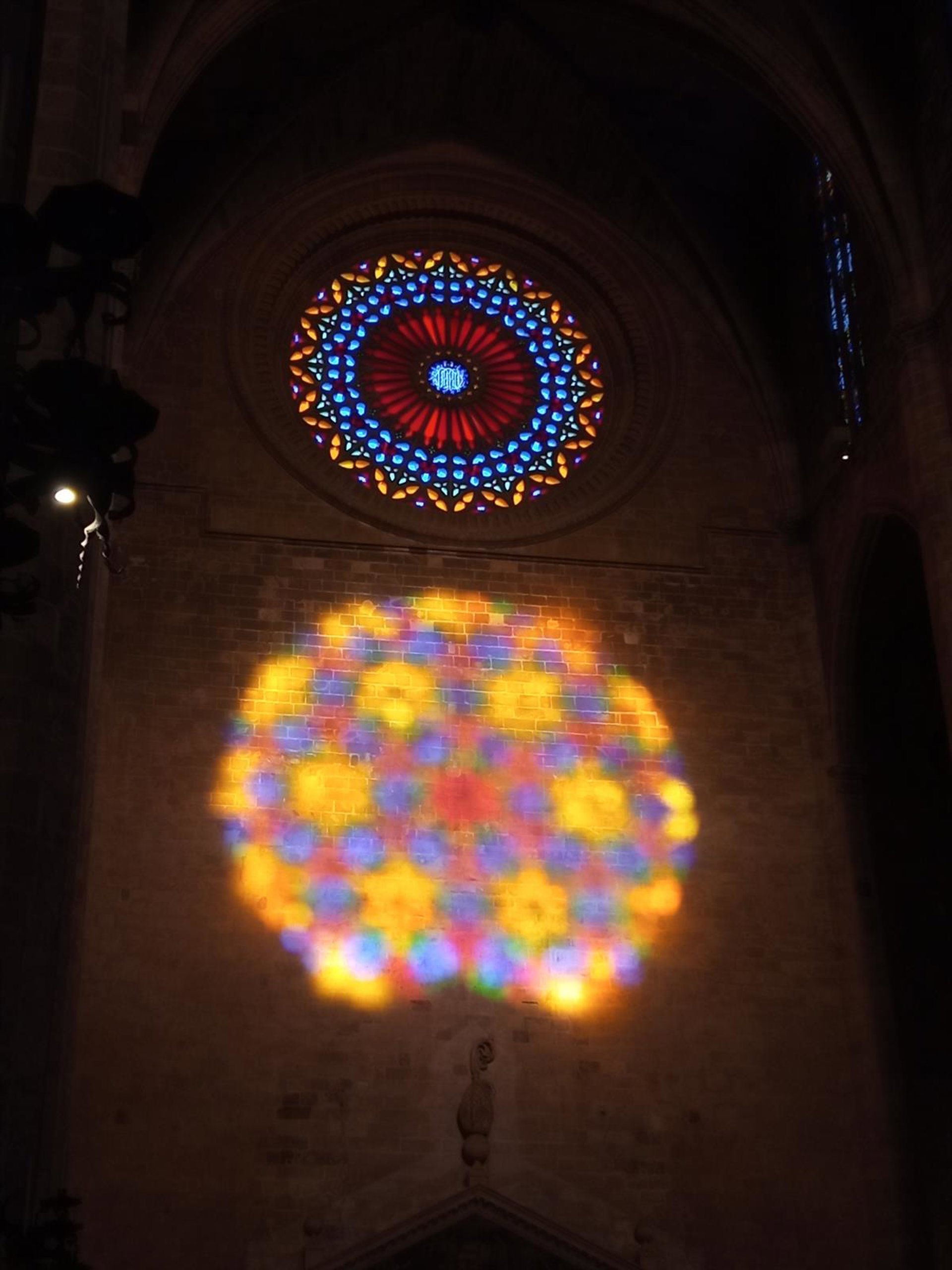 La Catedral de Mallorca acogerá el próximo sábado la 'Festa de la llum', un efecto lumínico en el que el rosetón monumental que preside el altar mayor se proyecta, con todos sus colores, sobre la parte interna de la fachada principal.