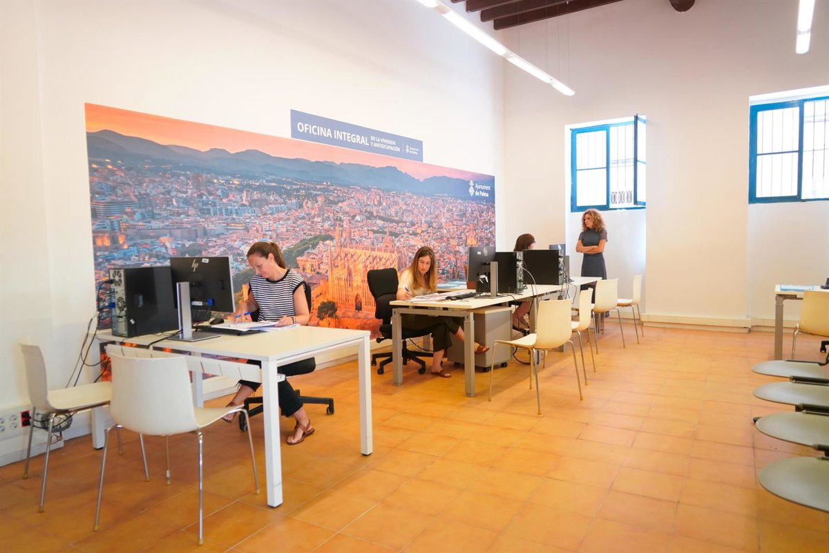 Trabjadores en el interior de la Oficina Integral de Vivienda y Anticupación de Palma. - AYUNTAMIENTO DE PALMA