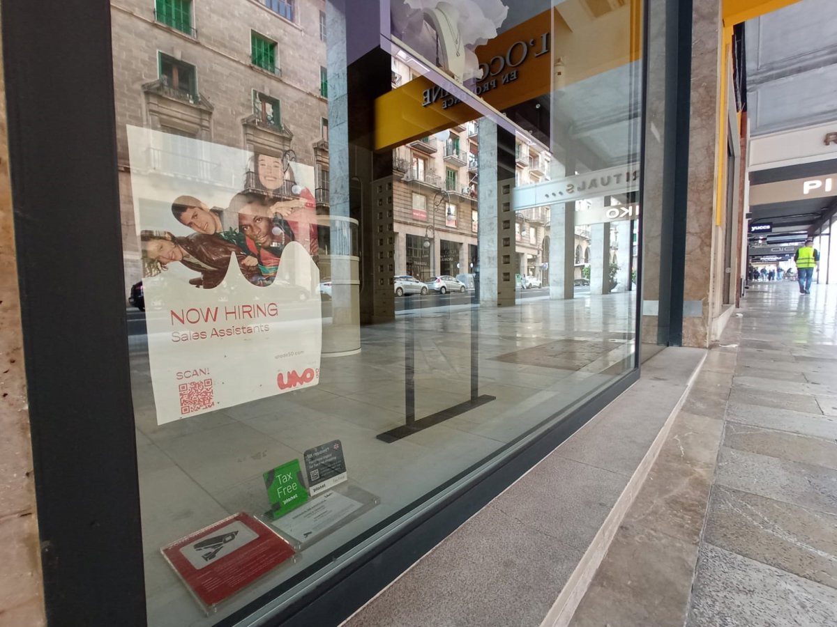Archivo - Cartel anunciando contrataciones en un comercio del centro de Palma. - EUROPA PRESS - Archivo