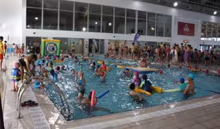 La fiesta se ha desarrollado en la zona de 25x21 metros de la piscina grande y en la piscina pequeña de aprendizaje, mientras que las calles transversales de la zona de saltos se han mantenido abiertas para los abonados.