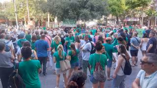 Convocados por la Plataforma La pública no es toca, que integra a diversos sindicatos y colectivos de la comunidad educativa, este grupo de personas se han movilizado para evidenciar que la red pública es "desmantelada" y "recortada" de manera "progresiva" y "silenciosa".