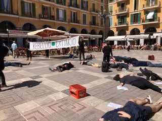 Cerca de 40 activistas han participado este sábado en una performance organizada por el colectivo 'Extinction Rebellion' que se ha llevado a cabo en la Plaza Mayor de Palma con el objetivo de concienciar a la población del problema del cambio climático y la "pasividad de los gobiernos" ante la situación, según los organizadores.