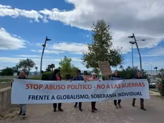Cerca de unas 50 personas han participado este sábado en una nueva 'Marcha por la libertad' en Palma, en esta ocasión bajo el lema 'Stop Abuso Político-No a las guerras; Frente al globalismo, soberanía individual'.