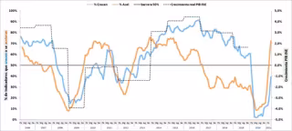 En estos momentos, el índice económico del Cercle muestra que se está asistiendo a una pronunciada aceleración --un 72% de los indicadores se aceleran-- y prevé que la actividad rebote con fuerza, al menos a corto plazo alimentada por la expectativa de un mayor control de la pandemia. En paralelo, el porcentaje de indicadores analizados que crecen casi se ha triplicado en dos meses, aunque aún están por debajo del umbral del 50% deseado.