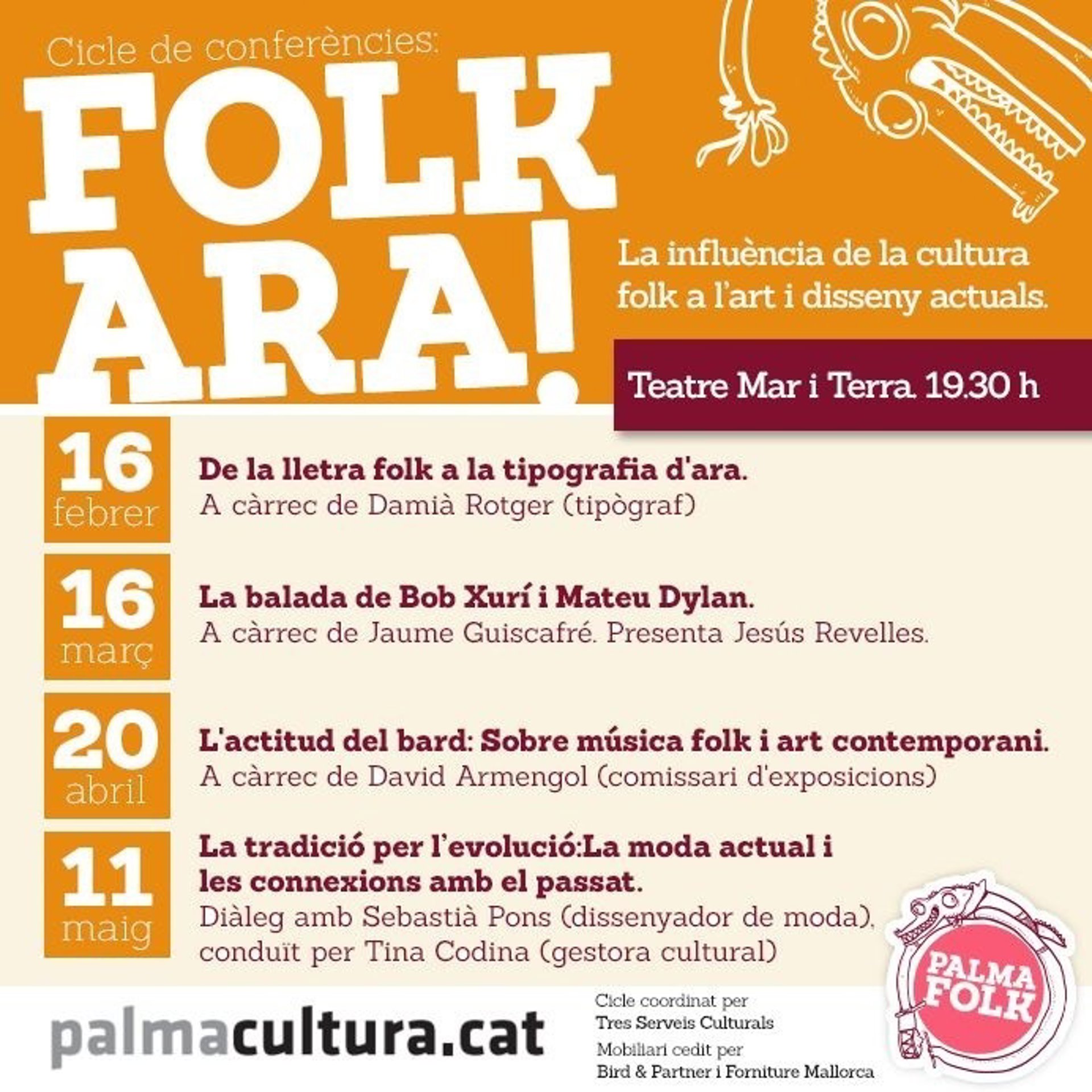 Este ciclo de conversaciones se enmarca dentro del PalmaFolk, el gran contenedor de toda la cultura de raíz que se hace en Palma y que tiene como objetivo reflexionar sobre las conexiones actuales de la tradición en ámbitos como el diseño, la literatura, el arte y la moda, según informa el Ayuntamiento en un comunicado.