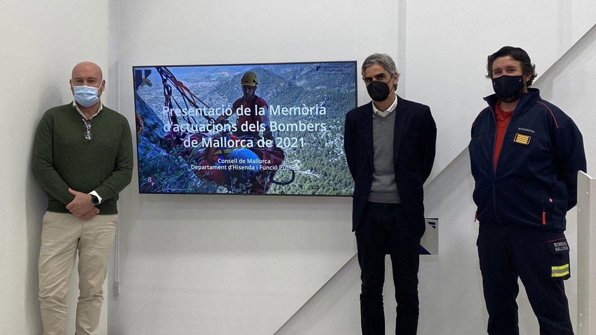 Son datos de la Memoria de actuación de los Bomberos de Mallorca en 2021, que han presentado este lunes el conseller insular de Hacienda y Función Pública, Josep Lluís Colom, junto con el director insular de Emergencias, Pedro Orfila, y el jefe de servicio de los Bomberos de Mallorca, Pedro Ladaria.