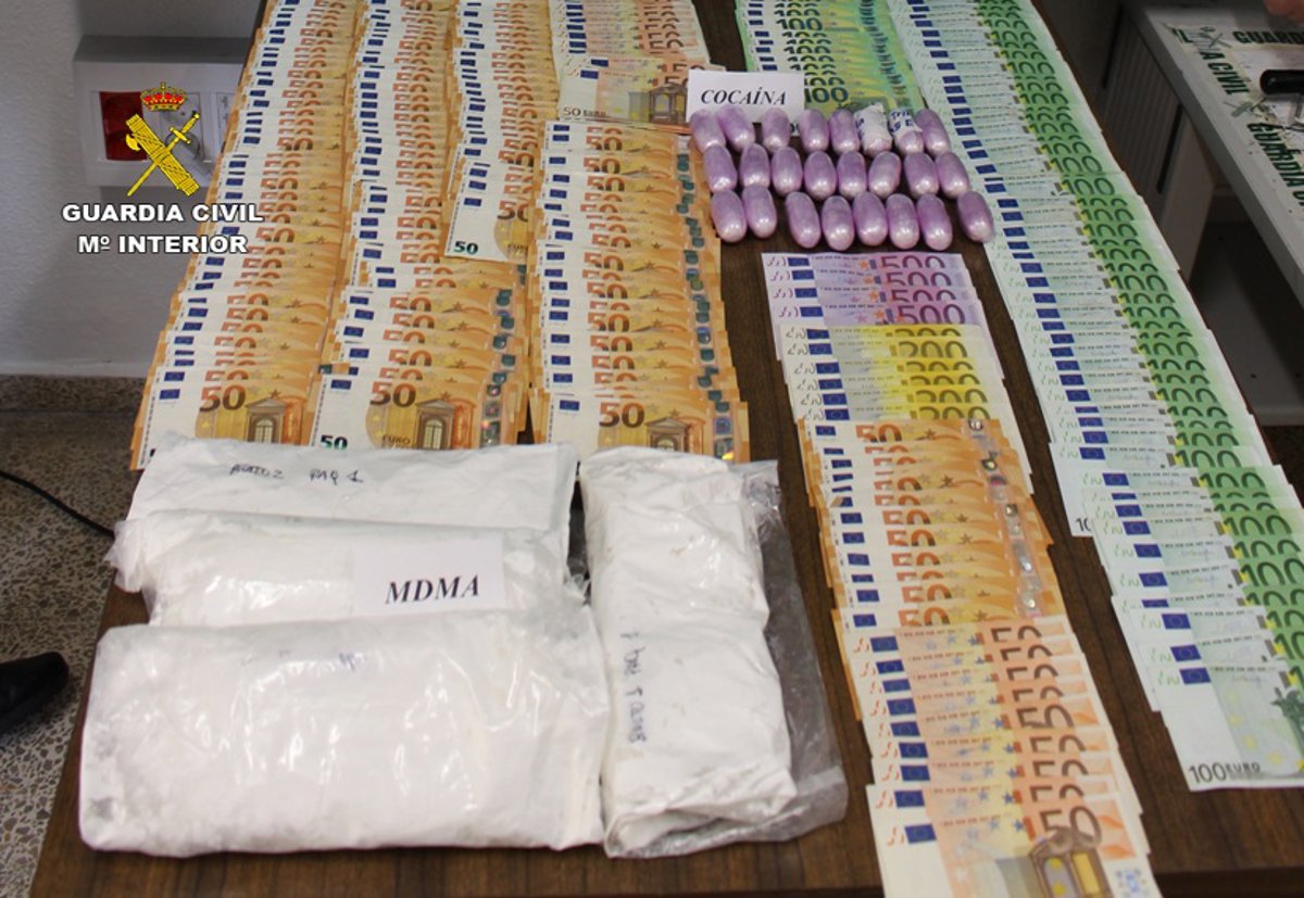 Según ha informado este domingo la Guardia Civil en una nota de prensa, también se han practicado diez registros domiciliarios y se han incautado cerca de cuatro kilos de MDMA, medio kilo de cocaína y 18.000 euros en efectivo.