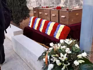 Un total de cinco víctimas, de las 14 que han sido identificadas en la fosa de Porreres, reposan desde este domingo en el cementerio municipal de Palma, tras un acto que se ha celebrado en el Muro de la Memoria y en el que las diferentes cajas con los restos han sido acompañadas de un centro de flores con los colores republicanos.