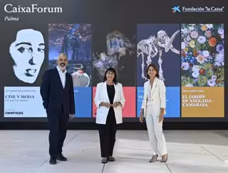 El director corporativo del Área de Cultura y Ciencia de la Fundación La Caixa, Ignasi Miró; la directora general adjunta de la Fundación, Elisa Durán, y la directora de CaixaForum Palma, Margarita Pérez-Villegas. - CAIXAFORUM