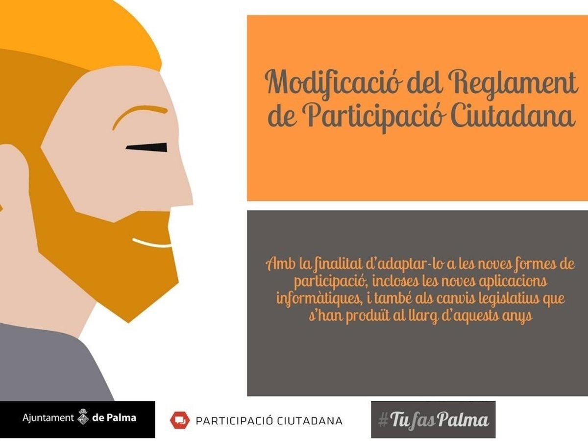 Para todo ello, en www.tufaspalma.cat se plantearán tres preguntas para conocer qué piensan de la participación ciudadana en Palma, cómo creen que Cort podría facilitarla y si tienen alguna propuesta que pueda ayudar a mejorar el Reglamento.