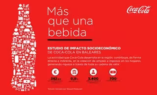 Las actividades de Coca-Cola en Baleares tuvieron un impacto directo e indirecto de 242 millones de euros en la economía de las Islas, lo que representa el 0,9 por ciento del Producto Interior Bruto (PIB) de la comunidad autónoma, donde la multinacional generó 3.400 puestos de trabajo directos e indirectos.