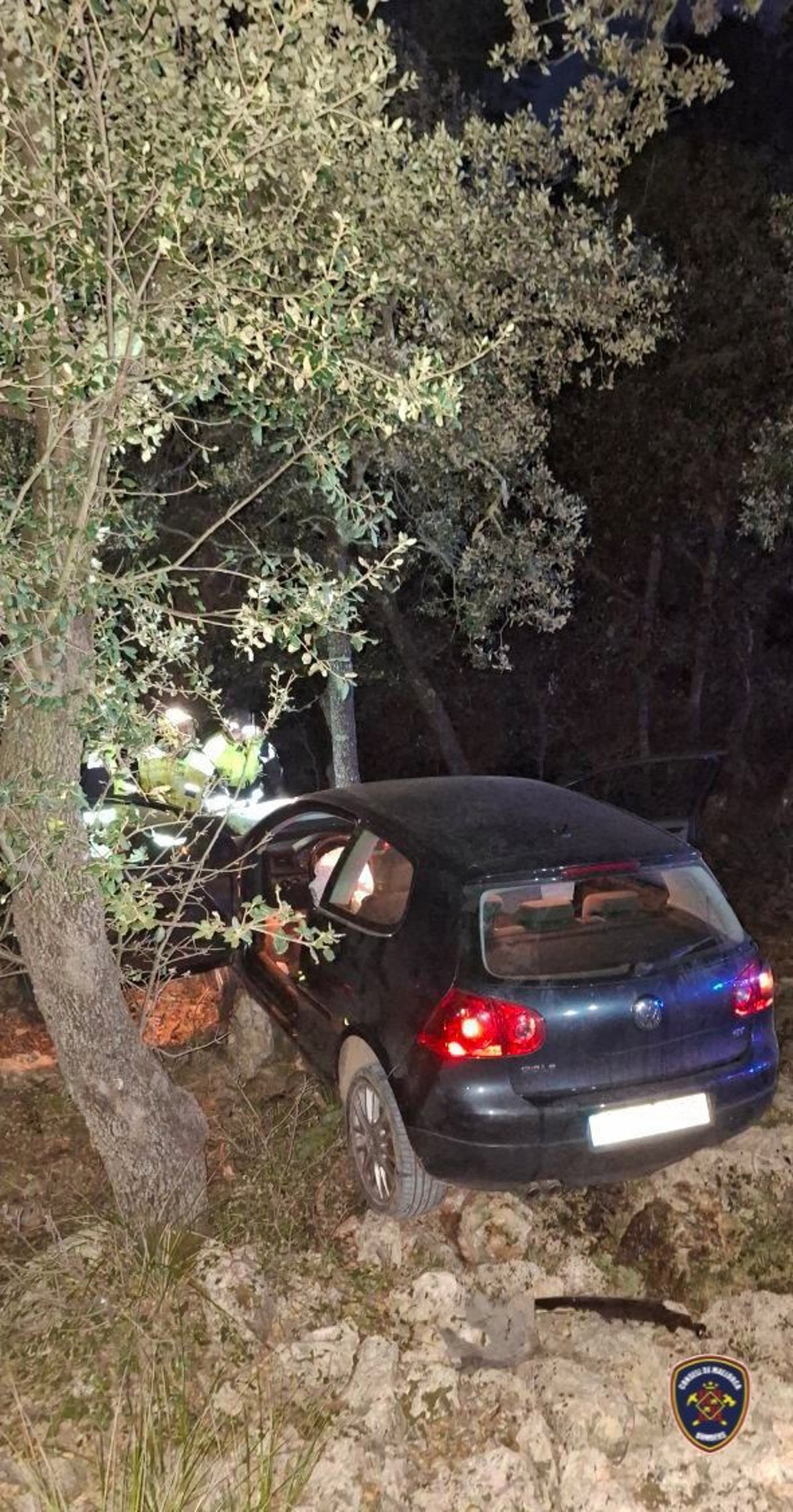 Un coche ha caído por un terraplén de más de diez metros de altura en el acceso a la Comuna de Bunyola.