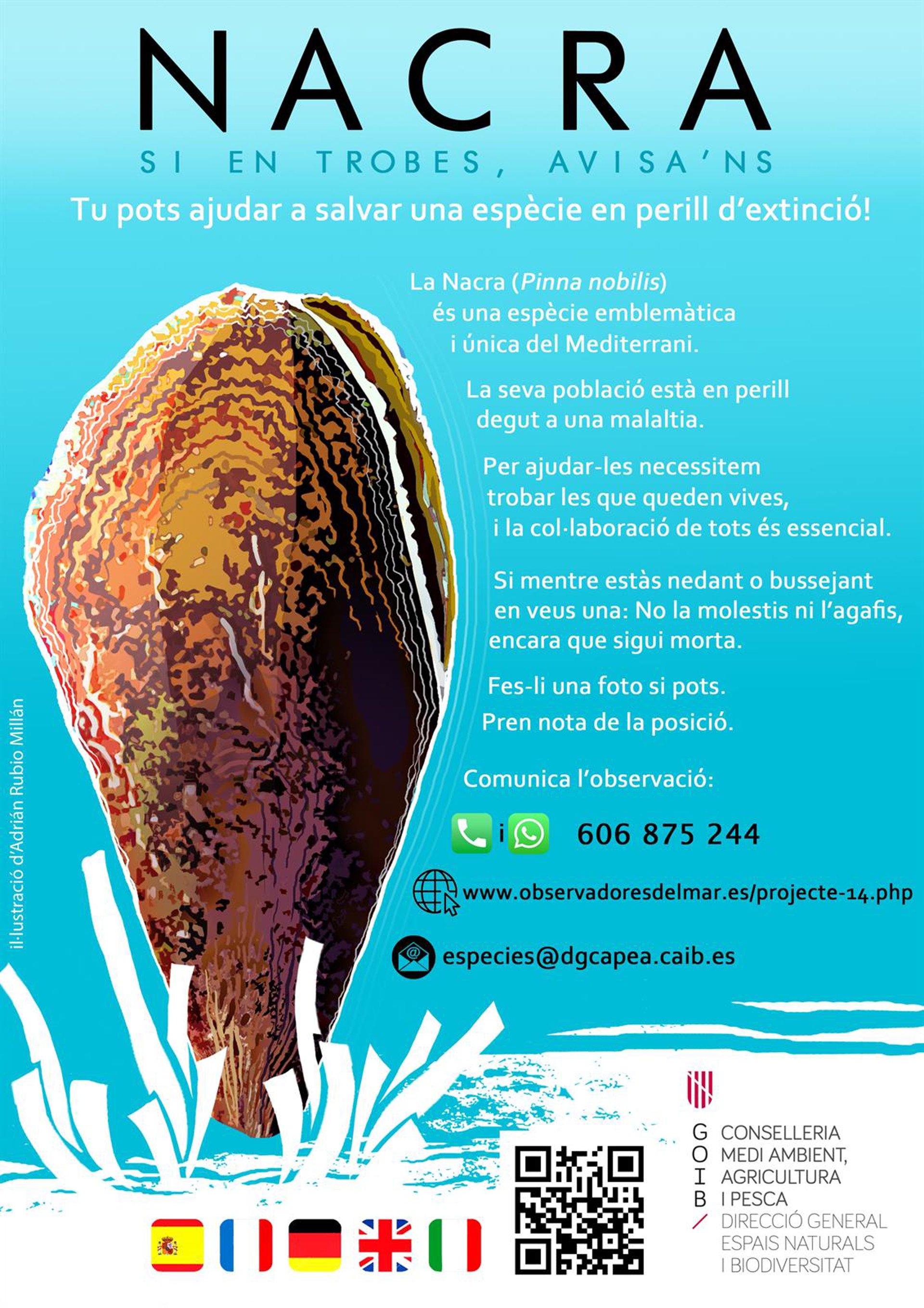 El servicio de Protección de Especies de la Conselleria de Medio Ambiente y Territorio ha recordado que tiene abiertas diversas vías de comunicación para recibir notificaciones de posibles nácares vivos. Éstas son a través de whatsapp (606 875 244) o de correo electrónico (especies@dgcapea.caib.es). También puede avisarse a través de la plataforma observadores del mar.