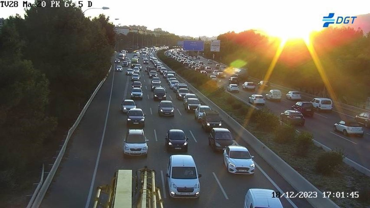 Estas retenciones también han provocado tráfico lento en la autopista hacia Llucmajor por la incorporación a Vía de Cintura.