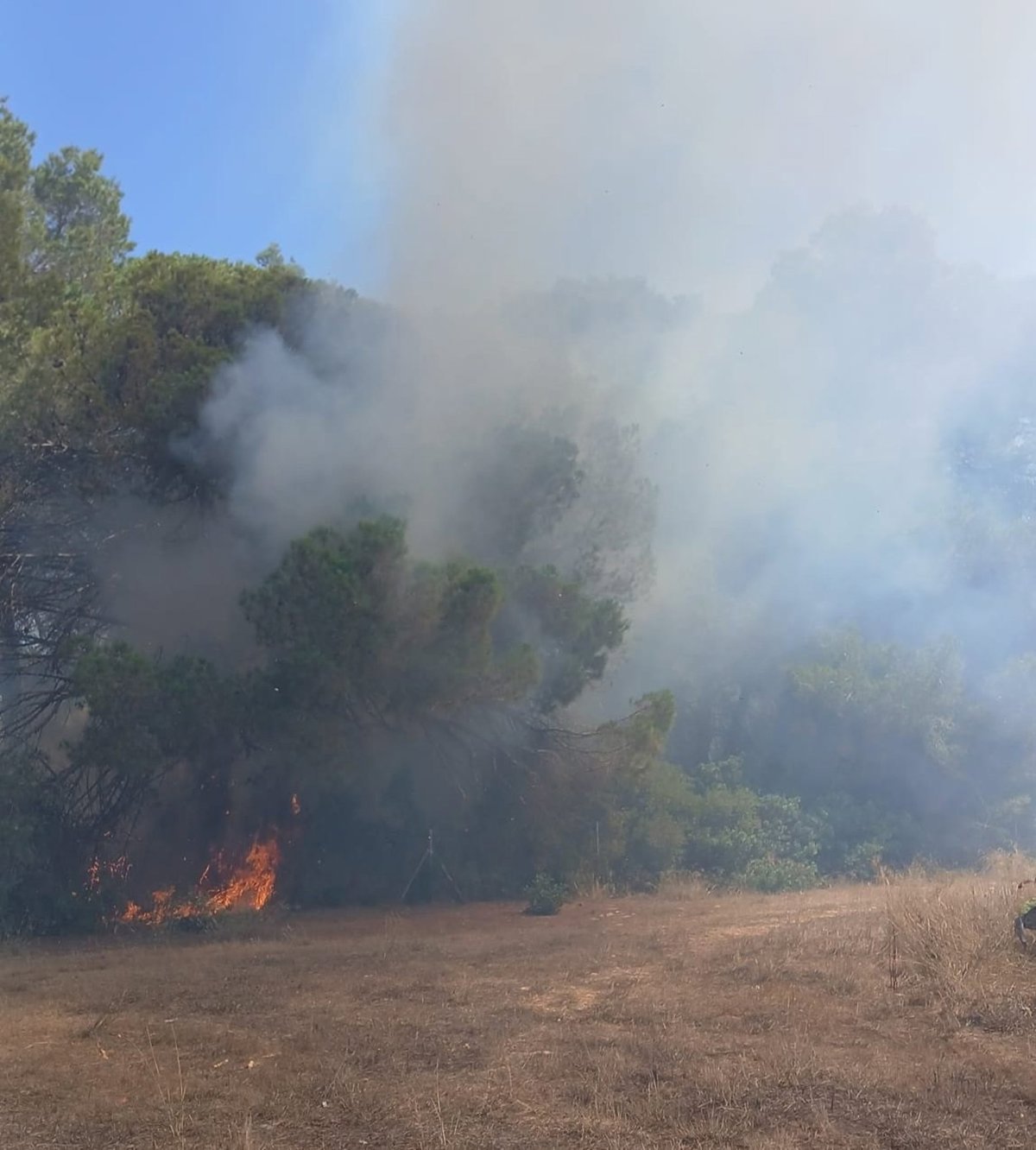 Los primeros en intervenir han sido agentes de la Policía Local de Sant Joan de Labritja, que han cerrado los accesos a la vía para evitar el tráfico rodado y garantizar la seguridad de las personas que se encontraban en la zona, procediendo también al desalojo preventivo.