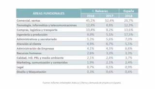 Los puestos del área comercial y de ventas copan casi la mitad de las ofertas de empleo en Baleares, según el Informe Infoempleo Adecco, presentado esta mañana en Madrid, en el que se han analizado 1,2 millones de vacantes y más de 380.000 ofertas de empleo.