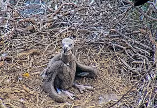 En julio los pollos ya son suficientemente grandes para volar, aunque se mantienen cerca del nido, acompañados de los progenitores.