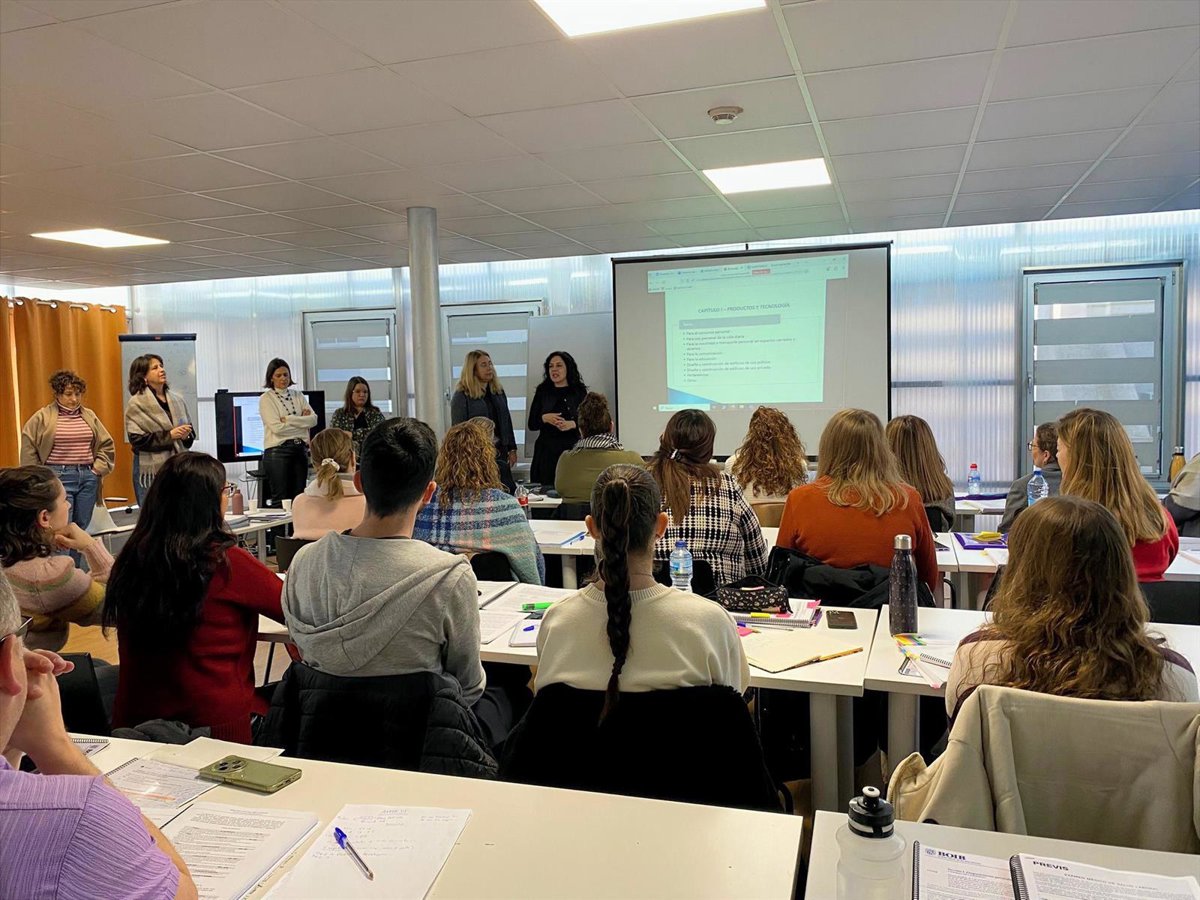 La consellera del ramo, Sandra Fernández, y la directora general de Atención a la Dependencia y las personas con Discapacidad, María Castro, han asistido a la jornada de formación de este jueves, donde han agradecido la implicación tanto a los alumnos como a los profesionales que la imparten.
