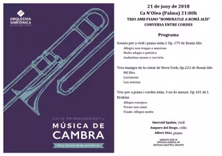 Actuará un grupo de cámara formado por Smerald Spahiu (violín); Amparo del Riego (violonchelo) y Albert Díaz (piano), que llevarán a cabo "una conversación entre cuerdas" como homenaje al compositor mallorquín.