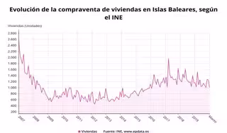 La compraventa de viviendas bajó un 13,7% en Baleares durante marzo, con 1.008 transmisiones de viviendas, según datos publicados este miércoles por el Instituto Nacional de Estadística (INE).